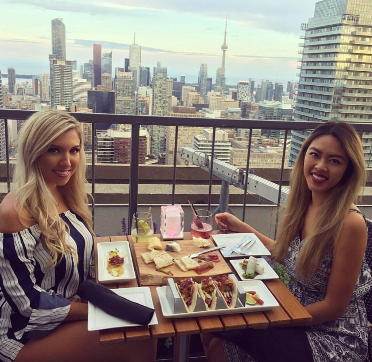 Rooftop restaurant on the 51st floor of manulife centre at bay bloor with spectacular views of downtown toronto cn tower.